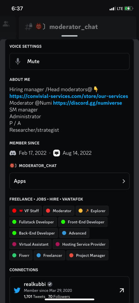 Am an experienced moderator, administrator, collab manager, community manager, content writer, strategist, researcher, server dev, personal assistance etc and this are part of my past experience 👇